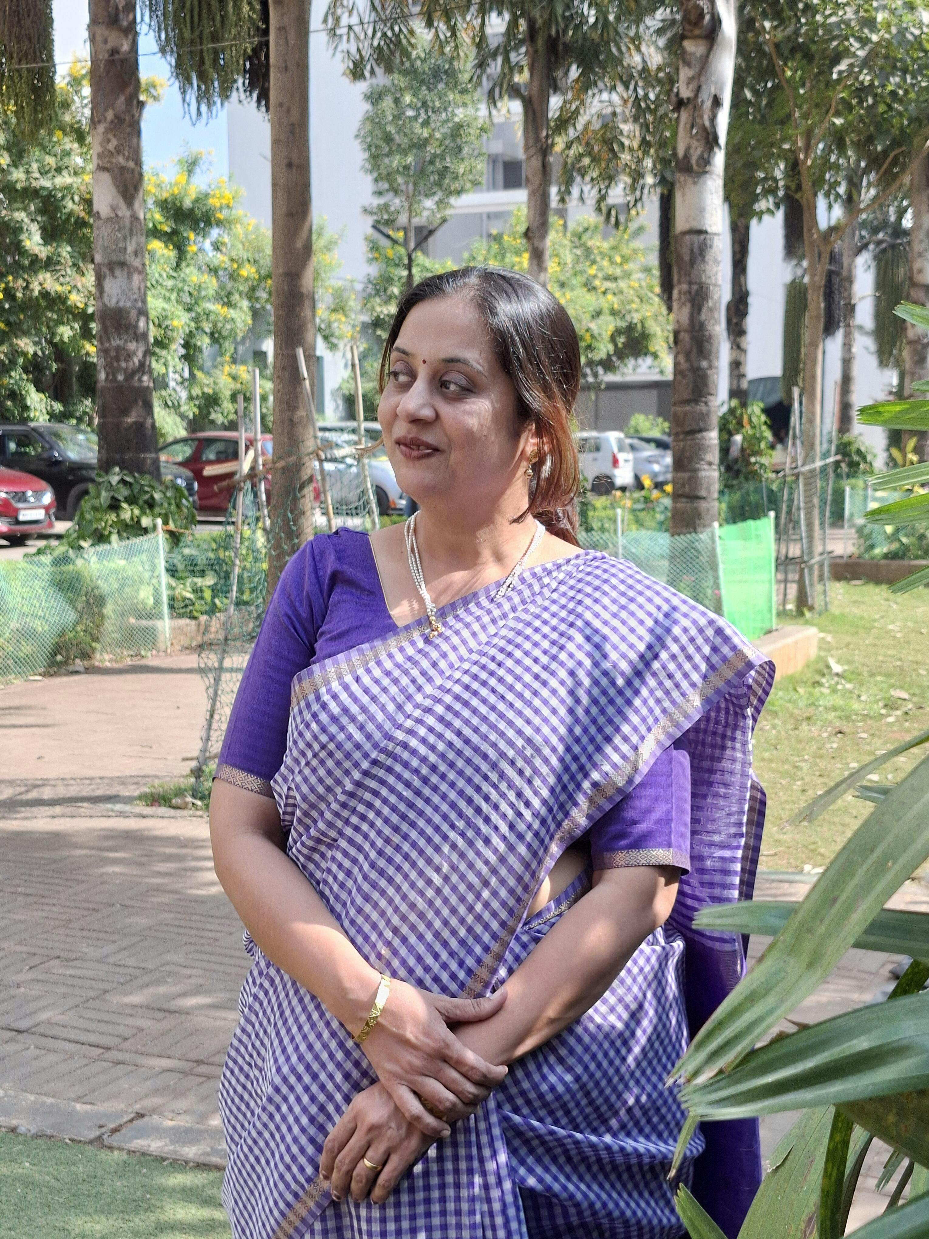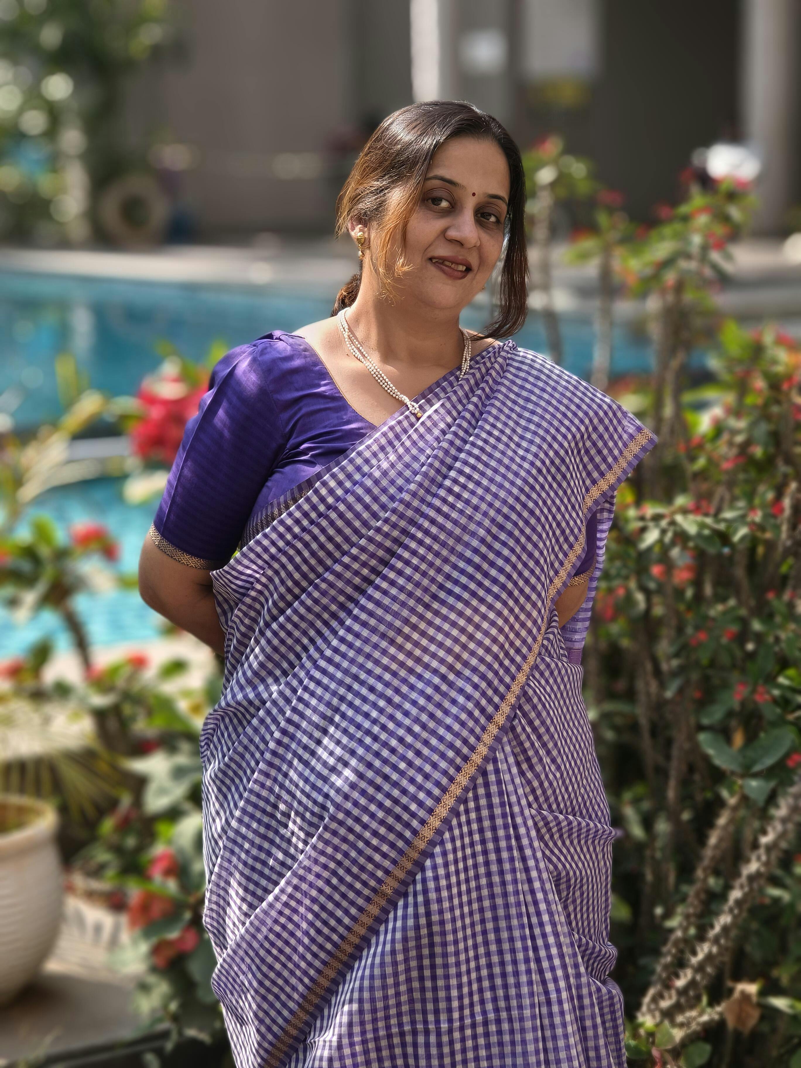 Purple silk cotton checks saree